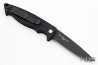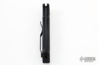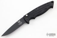 This Reflex Auto by Benchmade features a black drop point blade and a black aluminum handle with black stainless steel tip up clip, lanyard hole at the butt and safety on the spine. Includes the original box. Light scuffs are visible on the pocket clip otherwise the knife is in excellent condition.