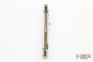 This Swivel Bolster from AB Italy features a Damascus bayonet ground blade. The handle is comprised of stainless steel bolsters and pommel with honey horn scales over brass liners and steel backspacer. Excellent condition. Dated 2000 and #18/50