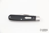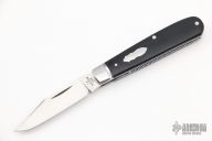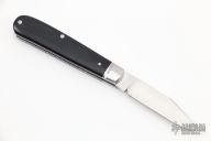 This Slip Joint by TA Davison features a hand rub satin finished clip point blade with a nail nick. The handle has fluted stainless steel bolsters, black canvas micarta covers with stainless steel escutcheon, stainless steel liners, stainless steel spring. Comes with zippered case. Has half-stop, flush in all positions. New from maker!