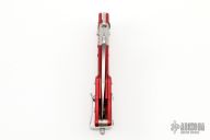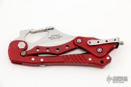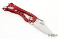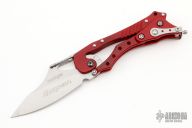 This E.T. (External Toggle) folder by Kershaw is a Grant and Gavin Hawk design, it features a bead blasted blade, black aluminum frame, and the Hawks' external toggle locking mechanism. The knife is very easy to open and close, and simply gripping the handle will keep the blade locked in the open position. There is a knurled roller safety on the spine that can be engaged to prevent partial opening of the blade during carry. Has some scuffs and a couple small dings, has been resharpened, otherwise good user condition.