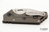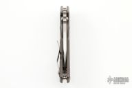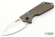 This 3/4 AR by Strider Knives features a stonewashed blade with notched thumbrest and thumbhole. The handle has a tumbled and anodized titanium frame with a stonewashed titanium tip up clip. Nice detent, lockup and blade seating. Comes with zipper case. Blade favors the right side slightly. There are scuffs and scratches, and junk in the crevises. Good condition.