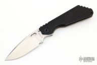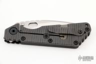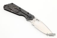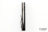 This SMF framelock folder by Mick Strider features a two-tone spear point blade and a dimple pattern black aluminum and flamed titanium frame and tip up titanium clip. Includes a "Lock Bar Stabilizer" for maximum reverse lock retention. Nice detent, lockup and blade seating. Comes with zipper case. Has some light scuffs and scratches, great condition otherwise.