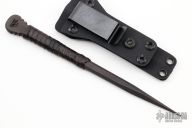 The WK Pick is a tool designed to punch holes, break ice, and dig. In addition, it can be used as an effective defensive weapon to stop an attacker. Pick has a leather wrapped handle to enhance grip. The simple molded sheath has a removable spring belt clip. Without the clip the sheath will fit in standard Molle loops on a vest or pack. Lashing holes facilitate alternate mounting. Tool Specifications Blade steel: 80CrV2 Black oxide no-glare finish Tool length: 7 1/2" Blade thickness: 1/4" Sheath Un-Lined Kydex®. Excellent Condition.
