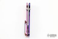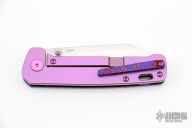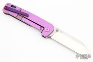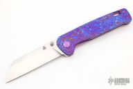 This QSP Penguin has a satin finished sheepsfoot blade with dual thumbstuds. The handle has a mokuti and titanium frame with a mokuti tip up clip.Nice detent, lockup and blade seating. Has a couple light scuffs, otherwise excellent condition.