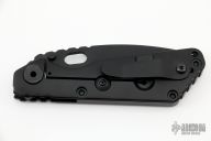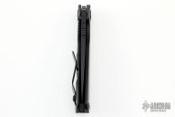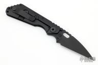 This SNG by Strider Knives features a black creakote blade with a notched thumbrest.  The handle features smooth black G-10 and cerakote titanium frame and tip up clip.  Blade is centered when closed and locks up with no play. Nice detent, lockup and blade seating.  Includes a PSD Strider tool and a padded velcro case.  Excellent Condition.