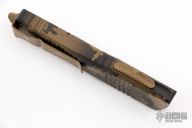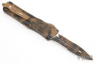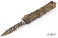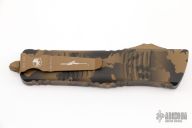 This Signature Series Troodon OTF automatic features a double edged camo blade with partial serrations. The handle is composed of camo aluminum with a stainless steel clip. Glass breaker. S/N #010, dated 08/2022. Comes with original box and papers. Excellent condition.
