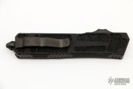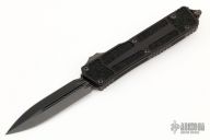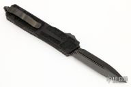 The Microtech Scarab II is a high quality tactical out-the-front knife, based on the original Microtech Ultratech design. Built to withstand the extreme, the Scarab II excels in high-intensity covert operations. The Scarab II is designed for a broad spectrum of utility and close quarter combat applications for use by qualified law enforcement, military, and government agency operatives. The Scarab II is fabricated to the highest possible standards to assure reliability and safety with its use. Featuring a one-handed, open and close, dual-action out-the-front (OTF) design, and double edge blade. The Scarab is produced with a large easy-to-grip handle that contains non-slip grip inlays on both sides. Comes with original box and papers. Excellent condition.