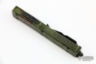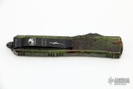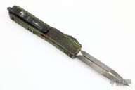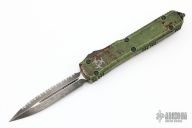 This Ultratech OTF automatic by Microtech features a D/E black blade with one fully serrated edge. Aluminum contoured frame with black hardware and tip down stainless steel clip. Dated 10/2021 and s/n 062. Includes original box and papers. Excellent condition.