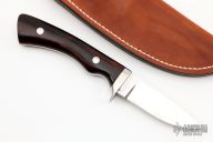 "I have been a knife maker since 1983. I got my start watching George Herron in his shop. He has always been a mentor, answering all of my questions and helping with the little problems of knifemaking. Most of my work is geared toward hunters. Since the most important part of the hunt is not the gun, no matter how much it costs, but a knife that will get the job done comfortably and quickly. I also build a few boots and fighters. All blades are ATS-34 that are professionally heat-treated to a Rockwell 59. All guards, bolsters, and pins are 303 Stainless. All knives are serial numbered. The sheaths are pouch type and are wet-formed to fit each knife."