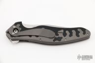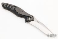 This Liner Lock Flipper from Ken Onion features a hand rub satin finished blade with swedge, notched thumbrest and flipper. The handle has a bead blasted titanium frame with black G-10 inlays and backspacer, titanium tip down clip. Fast, crisp opening with the Speed Safe Assisted Opening mechanism, nice detent and solid lock up. Comes with a zippered case. Excellent condition.