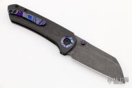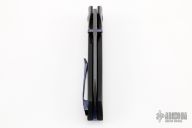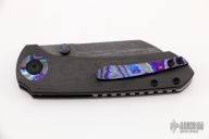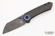 This Maverick S by Matthew Christensen features a dark stonewash finished blade with dual DarkTi thumbstuds. The handle has a fat carbon frame, inlaid titanium liner, DarkTi pivot collars, backspacer and tip up clip. Comes with original cloth case and box. Excellent condition.