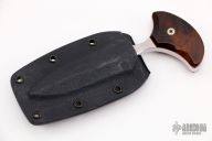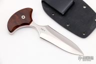 This Push Dagger by Mike Irie features a hand-rubbed satin finish double edge blade and desert ironwood scales with red liners. .249" blade thickness and 1.087" blade depth. Excellent grinds. Great fit in the hand. Comes with kydex sheath. Excellent condition.