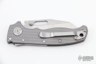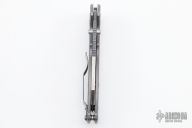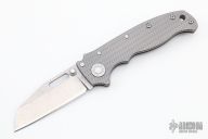The AD20.5 by Demko Knives features the impressive Shark Lock and an even more impressive price point. The Shark Lock mechanism is situated on the spine of the knife and operated with a ramp-like ‘fin’, allowing you to flip the blade open and closed at will. It's probably the best thing about this knife and design, how quickly it can be deployed and ready for action. It acts as a blade launcher and a little wrist action is all it needs. Comes with original box and extra clip. This one has a stonewashed blade and bead blasted and texture milled titanium handle. Excellent condition.