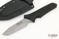 THE TIMBERLINE AVIATOR KNIFE WAS DESIGNED SPECIFICALLY FOR AVIATORS, HOW DO I KNOW??? I TALKED TO THEM AT THE BLADE SHOW IN ATLANTA AND THIS WAS ON THEIR DESIGN TABLE. THE 4 INCH BLADE IS MADE OF 440C WHICH IS A GREAT STEEL AND RESISTS RUST WELL AND IT IS VERY TOUGH. THE KNIFE WAS DESIGNED FOR CUTTING WIRES FROM AVIONICS TO FENCING WIRE. ACTUALLY, THE AVIATOR IS A SCALED DOWN VERSION OF EMERSON'S SPECWAR KNIFE. THE HANDLES ARE VERY UNIQUE FOR A FIXED BLADE BEING DESIGNED TO BE VERY ERGONOMIC. IT IS GLASS FILLED NYLON HANDLE WITH THE ANGLES FITTING THE HAND PERFECTLY. IT COVERS THE FULL TANG BLADE. IN A WORD THIS KNIFE IS - TOUGH. THE KYDEX SHEATH SYSTEM IS ALSO VERY WELL DESIGNED. IT CAN BE CARRIED ABOUT ANYWHERE. IT CAN UTILIZE STRAPS TO MOUNT TO A LEG OR TO NUMEROUS OTHER OBJECTS. IT ALSO HAS A BELT LOOP. THE STRAIGHT EDGE OF 440C STEEL HAS A ROCKWELL HARDNESS OF 58 TO 59. THE BLADES FINISH IS BEAD BLAST MATTE. THIS KNIFE IS NO LONGER MADE BUT VERY WELL LIKED. SO IF YOUR A BUSH PILOT OR PACKING OUT AND NEED A GREAT CAMP KNIFE, THIS IS IT. Comes with original box and papers, as well as original kydex sheath. Has some sheath marks on the blade, otherwise excellent condition.