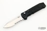 The Benchmade H&K Patrol family of knives have raised the bar in terms of value with quality materials and craftsmanship. The entire H&K line of knives are all manufactured by Benchmade and carry their limited lifetime warranty and are eligible for all Benchmade services. The composite nylon (Grivory) handle scales, coupled with stainless steel liners, are light weight and extremely durable and have an integrated safety switch and lanyard hole located near the base. This model, the 14430S, features D2 tool steel with a drop point partially serrated blade in a stonewash finish. The pocket clip is designed for tip up carry only and offers a left or right hand carry option. Made in the USA.