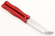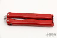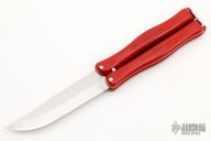 This Vintage CIA Balisong by Hackman has a satin finished stainless steel clip point blade. Handle is red polymer with O-latch at butt. Has some light scratches, otherwise good condition.