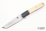3.25" Urban Trapper Tanto Flipper - Damasteel Zirconium and Mammoth Ivory