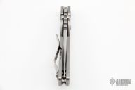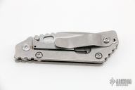 This PT by Mick Strider features a stonewashed blade with notched thumbrest and thumbhole. The handle has a stonewash titanium frame with matching tip up clip. New from maker.
