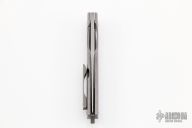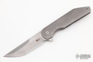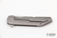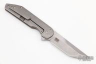 This Tetratoxic by Dustin Driver features a stonewashed Magnacut blade with flipper. The handle has a stonewashed titanium frame with matching tip up clip and backspacer. Rides on bearings, nice detent, lockup and blade seating. Comes with COA and original box. New from maker at the 2022 NCKS.