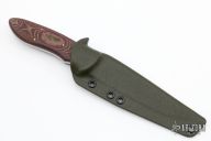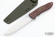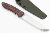 This OT by Joe Watson features a satin finished Magnacut blade with a sharp spine for firesteel striking, .182" blade stock and 1.097" blade depth, full tapered tang construction. The handle has Richlite scales with white liners and brass pins. Comes with a kydex sheath and COA dated 11/15/22. New from maker at the 2022 NCKS.