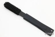 In 1988, he began making specialized knives for use by the military. This turned out to be fortunate turn of events, both for Mick and for the knife using world at large. Mick’s approach was to not get burdened by the weight of past designs. He started with a tabula rasa, a clean slate, informed only by his own experiences and knowledge of what a soldier needed in a knife. The knives he made didn’t look like the hunter-inspired knives seen in most PXs; instead they were almost brutish in their functionality: beefy, solid, and with unbreakable ¼” stock full tangs. These knives were the first indication of his innovative approach: in addition to their utilitarian design, the knives carried a subdued finish and subdued sheaths. No one carrying a Strider knife was going to be spotted because of sunlight glinting off of polished steel or a glossy leather sheath. Soldiers, policemen, and other men going into harm’s way couldn’t buy them fast enough. Mick sampled some good ideas, but made them great. For instance, he was not the first to wrap a knife handle with paracord, but he was the first to do it in a way that was tough enough for sustained infantry use. His knife line grew over the following years to include different varieties of fixed blades, all distinctive and many with specialized uses. But constant in all of them was a disregard for convention, and a desire to try new ideas. An example of this was the Ajax – it featured a very wide blade surface clearly designed to inflict damage. It drew on the weapons carried by Roman legionnaires, yet was modern and usable in the 21stCentury battlefield. Mick also worked on his technical skills, always striving to become better at the physical craft. At the 2002 Blade Show, a group of the best tactical knifemakers in the country decided to compete with each other to produce the most innovative and interesting fixed “battle blade” at the show. Mick’s entry, an incredible integral knife made out of ½” titanium stock with a zippered composite blade, gorgeous handles, and integral guard was the unanimous winner, and effectively retired the competition.