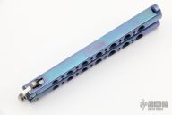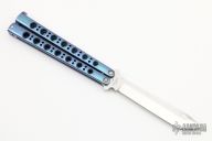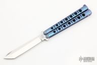 This Model 47A Balisong has a stonewashed tanto blade. Handle is orange peel finished and anodized titanium. Excellent condition. Comes with original box, papers and nylon velcro sheath. Excellent condition.