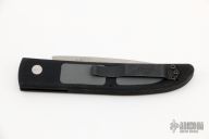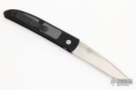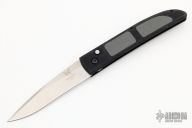 This 3000-BLK Auto has a satin finished drop point blade. Handle is black anodized alumiunum with grey non-slip inserts and black stainless steel tip up clip. Excellent condition. Comes with original box and papers.