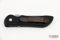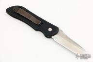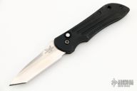 This 9500 Mini Auto-Stryker from Benchmade features a satin tanto style blade with notched thumbrest. The handle is comprised of black anodized and machined aluminum with black coated stainless steel tip up clip and lanyard hole in pommel. Push button release and sliding safety. Comes with original box and papers. Excellent condition.