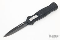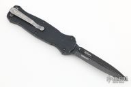 "Introducing an OTF like none-other.. The new Infidel® is rapidly making believers out of many a skeptic. Built for strength and reliability the patent pending double-action mechanics get it done over the long haul. Grab on and you will find the handle grip rock-solid with its patented machined in Presidio® style bi-directional tread pattern, and overall generous sizing for gloved hands. Intuitively pressure the release-slide forward and its spear-point edged steel fires and locks up with a unique three-point retention system with amazingly negligible blade play. Reverse the process and the blade retracts in a rapid blur of motion. The Benchmade Infidel is a special operator’s fantasy come true."  Has scuffs, scratches and dings, has been used and carried, otherwise good user condition.