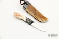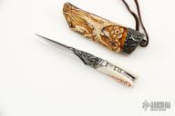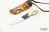 My primary profession was an economist. Although it was not the profession of my dreams, I liked to travel and in the communist Czechoslovakia it gave me some opportunity to visit some distant countries, where I lived for 5 years. So through the oriental jambiyas and peshkhabses which I admired in the Middle East I came to knife making. I am a full-time knife maker since 1990. In 1991 I visited my first knife show in Bern, Switzerland. Since this time I'm taking part in many shows in Europe and USA. Since 1996 I am the member of the Knife makers' Guild. As I am doing a rather elaborate art knives with a lot of carving or sculpturing and I am using mostly hand tools [chisels, hammers...] I am not able to do more than 6 - 10 knives per year. To my favourite themes belong animals, natural nations, mythology and history. So you can see mostly this subjects on my knives, too. Concerning the materials, I like to use stainless steels [ATS 34, 440 C] or damasteel, for handles various fossil materials and nice wood. Some of my knives are inlayed by gold, silver and some alloys of these metals.