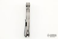 This Hinderer Designed 0562 Framelock Flipper has a drop/ spear point blade with swedge, notched thumb rest, dual thumb studs and flipper. Handle has a stonewashed titanium frame with stainless steel lockbar insert and lockbar stabilizer. Stainless steel clip is tip up.  Excellent Condition.