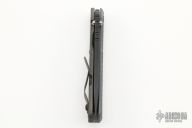 This MSC SNG framelock folder by Mick Strider features a black blade and a MEFP aortic gray G-10 and flamed titanium frame and tip up titanium clip. Includes Hinderer "Lock Bar Stabilizer" for maximum reverse lock retention. Nice detent, lockup and blade seating.  Excellent Condition.