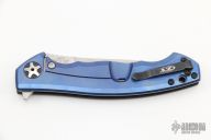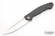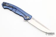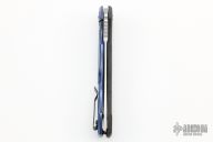 This 0452CF Sinkevich designed folder from Zero Tolerance features a drop point blade with swedge. The blade has tumble finished flats and satin grinds. The handle has a carbon fiber scale on the non lock side, and an anodize tumble finish titanium frame lock on the other, tip up black stainless steel clip. Serial #8483. Has some light scuffs and scratches, great condition otherwise.
