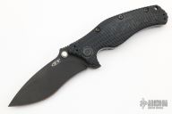 The Zero Tolerance 0200 Folder Knife features a black tactical blade. The 0200 features a recurve blade. The blade is made from 154CM stainless steel and has a black Tungsten DLC coating. The scales are 3D machined from G10 to give you maximum grip. It also has ambidextrous thumb studs for one hand opening. The 0200 also includes multi position (tip up or down, right or left) removable pocket clip. Smooth flipping action with no wrist action required. Has a few light scuffs, otherwise excellent condition. #6424