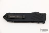 Add a state of the art OTF automatic to your rotation with the RECON-040 from Guardian Tactical. This RECON model is built with a black blade and a black anodized handle and hardware. Guardian Tactical's patented OTF mechanism provides smooth, responsive opening action. The unique thumb slide design is separated from the aluminum handle by a steel plate and 3 ceramic balls that eliminate grinding and wear. An innovative locking mechanism sits off to the side of the blade channel so it doesn't drag against the blade when opening and closing. These features eliminate the friction on the blade and button that have always plagued OTF knives. Features: Anodized aluminum handle is compact and lightweight for durable everyday carry. Innovative OTF mechanism offers fast and smooth opening action for responsive tactical deployment. Item includes a stainless steel pocket clip for secure tip-down carry. Comes with original box. Has a few light scuffs, otherwise excellent condition. #0341