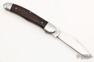 This Copperhead by Schatt & Morgan features a satin finished blade with nail nick and long pull. The handle has stainless steel bolsters, rosewood covers, brass liners and stainless steel spring. Excellent condition. Comes with original box. 1 of 25