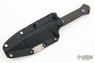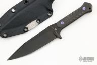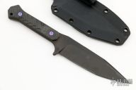 This Fedele X by Blackside Customs features a black DLC blade with notched thumbrest, .197" blade stock and 1.178" blade depth, full tang construction. The handle has carbon fiber scales with purple titanium hardware. Comes with a kydex sheath with logo plate and soft loop, original box and COA dated "Micro Batch 2022". New from maker.