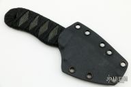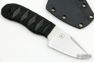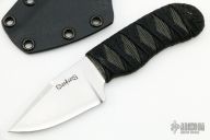 This Custos TAD EDITION by Bantang Knives features a satin finished clip point blade with false top edge, .126" blade stock and 1.368" blade depth, hidden tang construction. The handle has black cord wrap over gray cord. Comes with a kydex sheath. Has a couple light scratches, otherwise excellent condition.