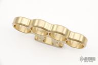 This 4 finger brass knuckle by WK21 is made from solid .500” thick 360 Brass. The dimensions are approximately 2.5” x 4.25” x .5” with 1-inch diameter finger holes. Micro-brushed satin finish (fingerprint resistant). Woody Knuckle design and finishing process. Individually boxed. 100% Made in the USA. New from maker. This one has a clear coat.