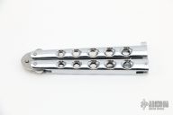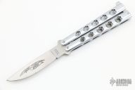 This Balisong by Parker Cutlery Company features a satin finished blade. The handles are chrome plated. Excellent Condition.