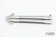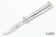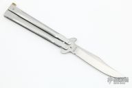 This Balisong by Parker Cutlery Company features a satin finished blade. The handles are stainless steel. Has som scratches, otherwise good condition.