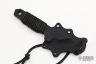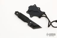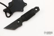 This Tanto Dashi by Sam Eddleman has a black chisel ground tanto blade with .249" blade stock, .987" depth. The handle has black paracord wrap. . Comes with a kydex neck sheath. Has some scuffs, otherwise good condition