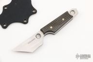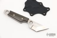 This Tanto Dashi by Sam Eddleman has a satin finished chisel ground tanto blade with notched thumbrest, .134" blade stock, .900" depth. The handle has carbon fiber scales. Comes with a kydex neck sheath. Has some light scratches, otherwise excellent condition