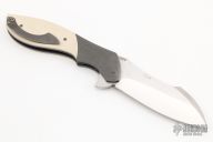 "People often ask how I got involved in knifemaking. I have always carried a pocket knife, and have always been intrigued and wanted to own a custom made folding knife. I started making rings from titanium for friends and family, and in 2003, my dad came home one day from work with a couple issues of Blade magazine. After a couple days of paging through the magazines, I was on the phone ordering materials for two folding knives. After tearing apart my Benchmade to get the general idea of how these things work, and multiple E-mails to David Broadwell (who took the time to answer every question I had in great detail and who I still owe an extra large 120 oz. half diet half regular big gulp) for pointers, I built my first two knives. These two knives ended up being Christmas gifts. The knives went to my Dad and my Father -in- law. I have been an addict ever since. I am a third generation Die Maker, a position I still hold."