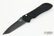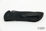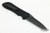 This 9101SBK AUTO Stryker from Benchmade features a black coated drop point tanto style blade with swedge, notched thumb rest. The handle is comprised of milled black aluminum frame with a black coated stainless steel tip up clip. Safety on backspacer and lanyard hole in pommel. Has a couple light scuffs, otherwise excellent condition. Comes with a nylon belt sheath.