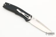 This Torrent by Benchmade is a Ken Steigerwalt design. Features Nitrous assisted opening mechanism. Stonewashed blade with single thumbstud and false top edge. The handle has black G10 scales, titanium liners, and stainless steel backspacer and tip down clip. Comes with a nylon belt sheath. Excellent condition.