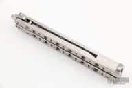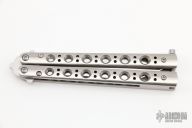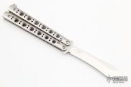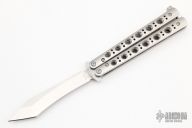 This Model 67 Balisong by Benchmade features a tumble finished tanto recurve blade and stainless handles with T-latch. Nice and tight. Comes with original sheath. Excellent condition.