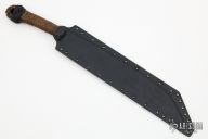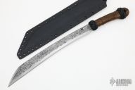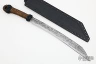 This Ginunting Chopper by James Helm features a hand forged wharncliffe recurve blade with swedge, .190" blade stock and 1.67" blade depth, hidden tang construction. The handle has black paracord and hemp wrap. Comes with a kydex sheath. New from Maker.