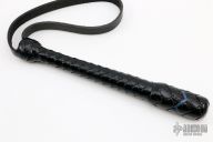 9" Black 894 Blackjack with a Thin Blue Line by DD Whips. Spring core black leather covered blackjack with cowhide wrist strap and grip. New from maker. Comes with COA.