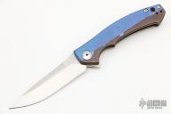 This 0450 Sinkevich designed folder from Zero Tolerance features a drop point blade with swedge and flipper. The handle is comprised of an anodize and tumbled titanium frame over red anodized aluminum stand offs, has deep carry titanium pocket clip. Has some light scuffs and scratches, great condition otherwise.